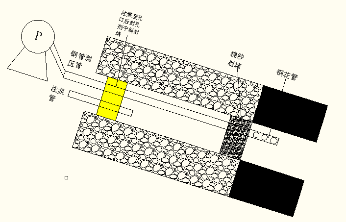 此過(guò)程也可采用分段注漿法:即先向孔內(nèi)注入少量較高濃度配比的漿液,待經(jīng)過(guò)30-50分鐘后,再向孔內(nèi)注入正常配比的漿液直至注滿。