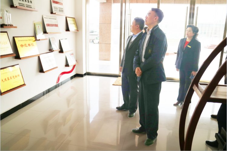 在榮譽墻前面,金鼎安全董事長蔡長輝向戴處長一行介紹了金鼎安全近年來取得榮譽,這些榮譽是政府和社會對金鼎安全直觀的肯定。金鼎安全在瓦斯開采和利用上不斷創(chuàng)新,致力于打造礦山安全領(lǐng)域獨角獸。